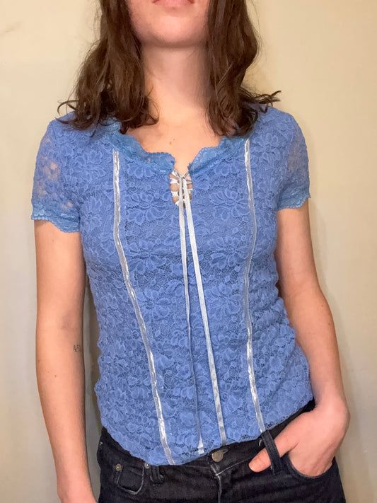 Vintage Blue Lace Top┃Size M