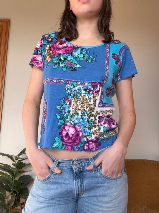 Vintage Blue Beaded Rose Tee┃Size L