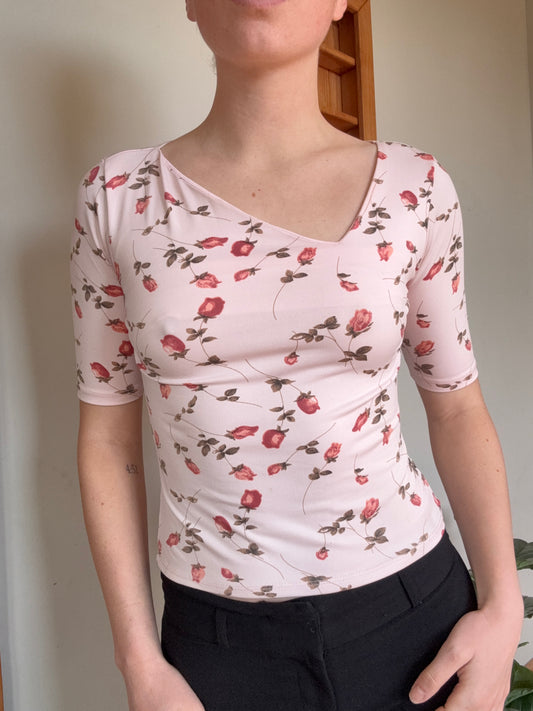 Vintage Pink Rose Top┃Size M